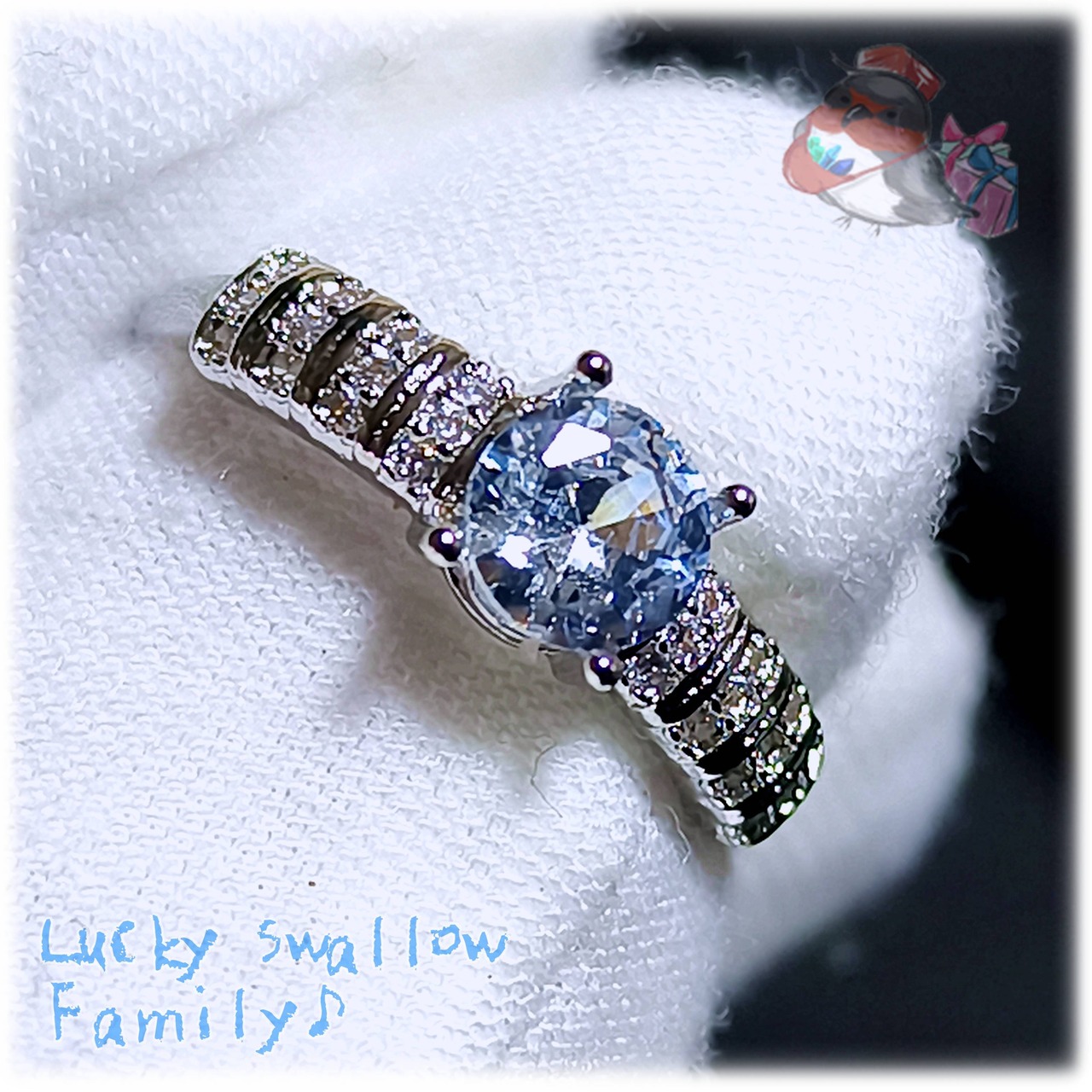 日光やファイバーライトを使用し、スーパーや喫茶店や飲食店など照明の多いところを再現しており、光源が多いほど輝きが増幅されます。特にスーパーなどは光源が非常に多いため、動画のルースより輝きが増すこともあり、家庭の室内でも光源が多いと輝きが増幅されます。